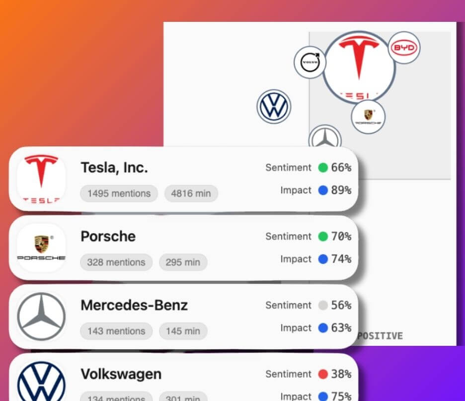 Setup and forget: Act on mentions, trends & changes in sentiment in real-time. Gain intelligence for both minimizing potential damaging mentions and for spotting early opportunities in rising trends.